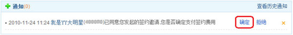 3、频道所有者(OW)在频道中心通知区域收到新的通知,确认签约: