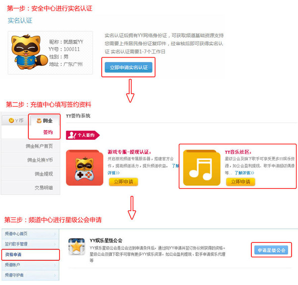 1.为了节约您申请星级公会的时间,建议您在满足1—8点要求之前,先登录YY安全中心:https://udb.duowan.com/realname.do进行实名认证。