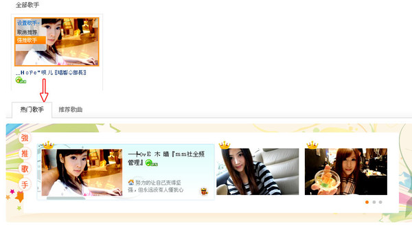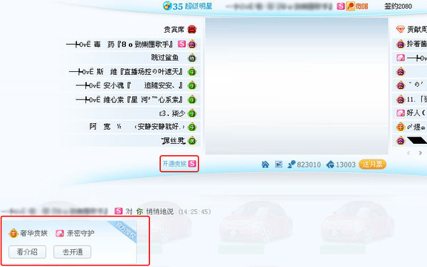 2) 在频道内显示官方授权超级偶像信息,并可推广贵族/守护者