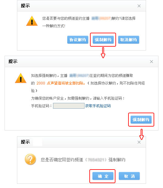(3) 当频道发起强制解约,解约成功后,将扣除此主播为频道赚取的音乐声望。本级音乐声望不足以扣除时,音乐声望显示为负数,不降低等级。