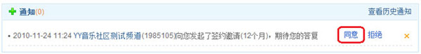 2、主播登录个人中心,在通知中,查看续约邀请信息,点击【同意】。