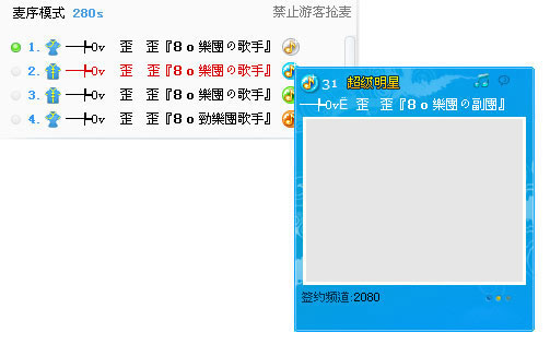 2、上麦演唱:与频道签约后,主播可在频道内上麦演唱。此时听众可以赠送月票给主播,每张月票可为主播增加1000音乐声望,从而提高等级。