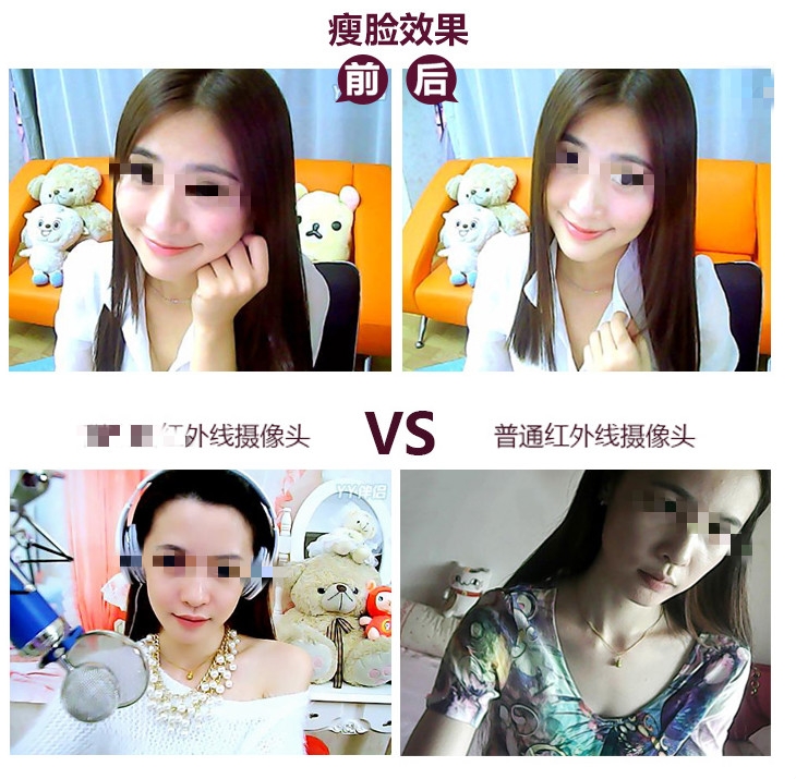 秉着求知到底的念头,雷锋网记者上了某宝去搜索跟女主播有关的商品,有了一些特别的发现。首先,奇妙的摄像头确实存在,这些红外线高清摄像头号称美瞳美颜、自动对焦,还有瘦脸的效果。可以通过调节饱和度改变女主播头发的颜色。