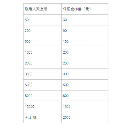 同时,主播需要缴纳一定的保证金后,才能拥有相应的直播观看人数,违规后按照比例扣除保证金。